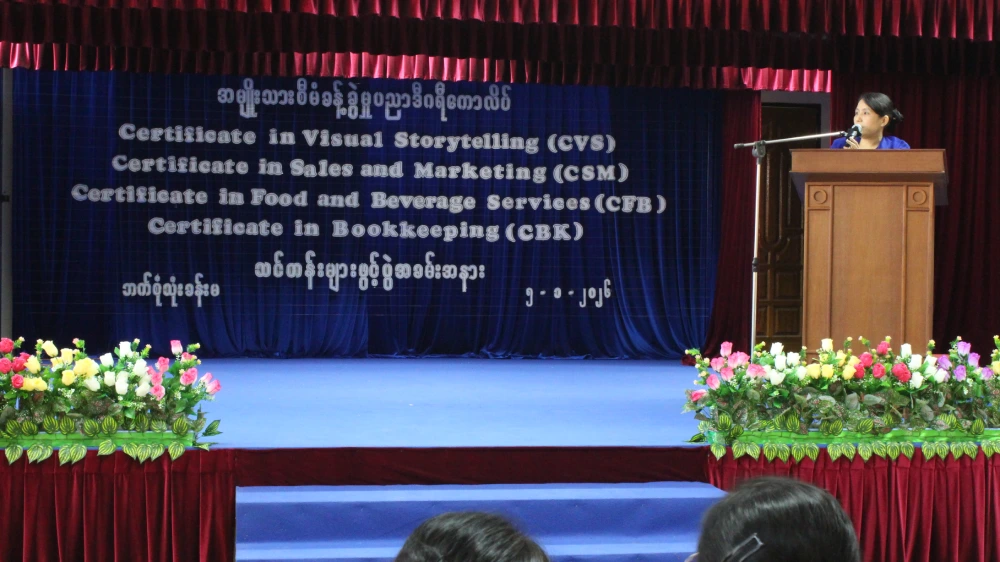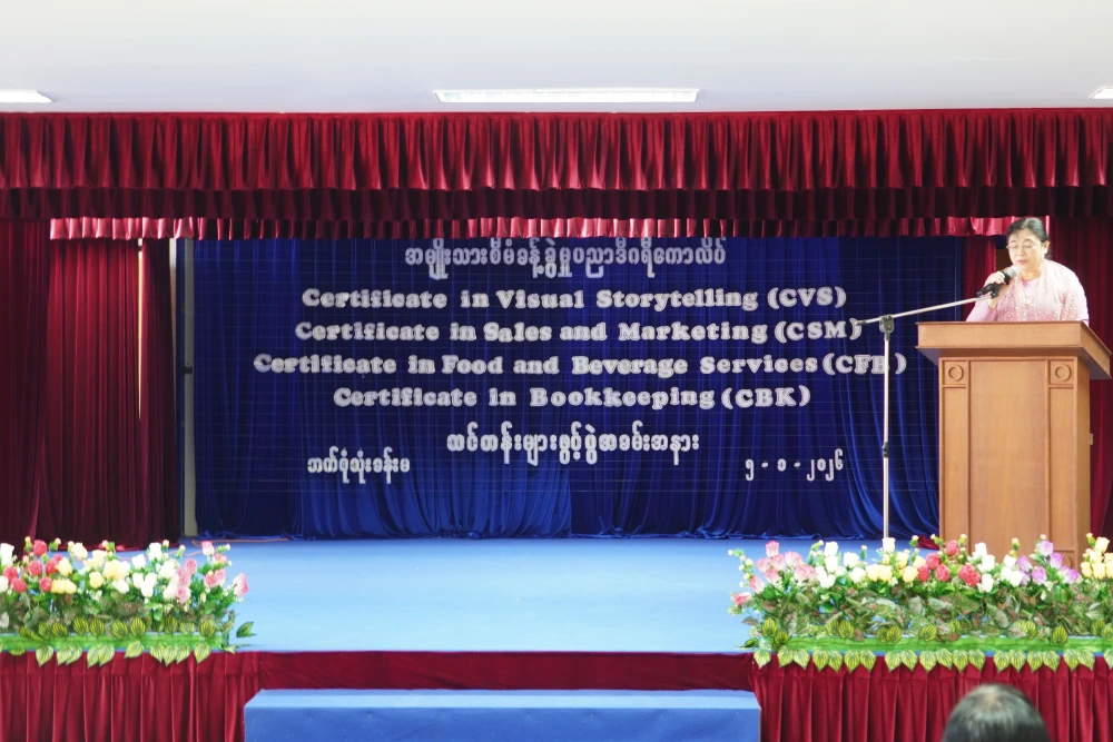 (၅-၁-၂၀၂၆) အမျိုးသားစီမံခန့်ခွဲမှုပညာဒီဂရီကောလိပ် Job-Ready Skills သင်တန်းများဖြစ်သည့် Certificate in Visual Storytelling (CVS), Certificate in Sales and Marketing (CSM), Certificate in Food and Beverage Services (CFB), Certificate in Bookkeeping (CBK) သင်တန်းများဖွင့်ပွဲ